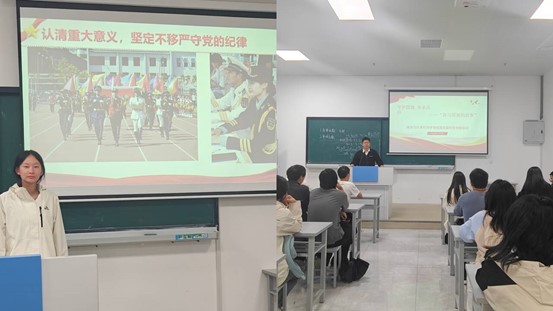 守护国旗,传承信仰。为厚植爱国主义情怀,赓续国旗仪仗队的使命荣光,增强学生国防观念,10月1日,数学与计算机科学学院在明理楼C101举办“我与国旗的故事”国庆特别活动。活动由学院分团委书记柯泓明主持。