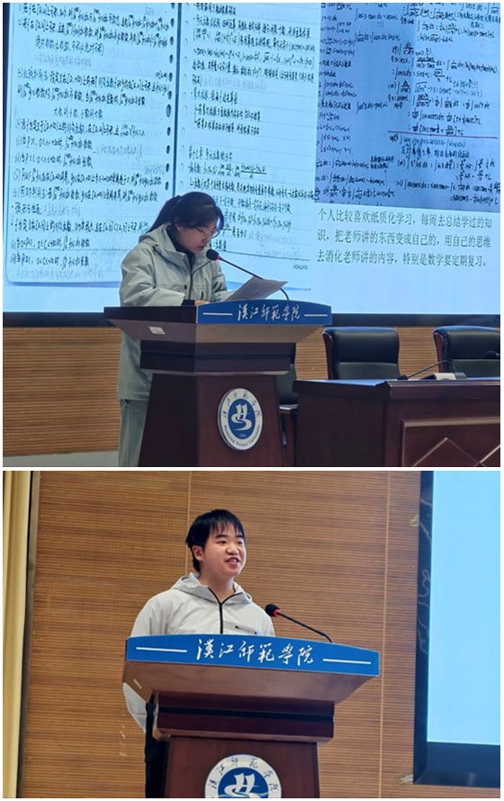 交流会在轻松愉快的音乐声中拉开帷幕。来自数学与应用数学、统计学、软件工程、网络工程、数据科学与大数据技术等专业的优秀学生代表依次上台,结合个人学习经历,围绕学习规划、时间管理、备考策略、学科竞赛参与及专业发展方向等方面进行了精彩分享。他们语言生动、案例详实,赢得了在场同学的阵阵掌声。