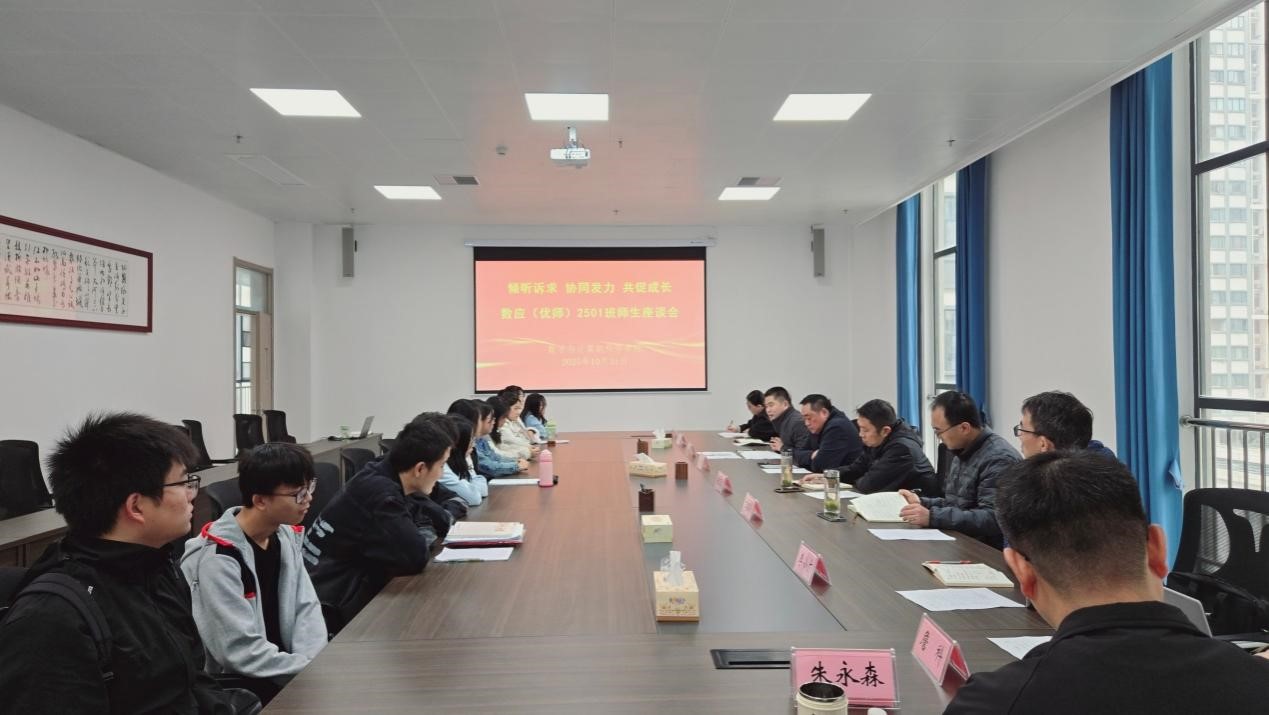 10月31日上午,学院在明理楼B301会议室召开了数学与应用数学(优师)2501班师生座谈会。学院领导班子成员和教研室主任、辅导员、班主任、任课教师以及2025级数应优师班学生代表参加。副院长王启东主持会议。本次座谈会旨在深入了解数应优师班的生活方面、教育教学等的情况,倾听同学们的诉求,进一步提升人才培养质量。