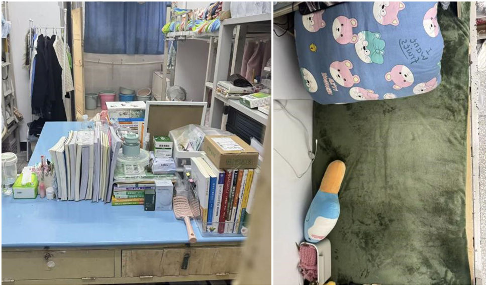 推开宿舍门,清新之气迎面而来。地面无污水渍,洗漱台上一尘不染,置物架上沐浴用品排列整齐,容易藏污纳垢的角落,也被打扫得干干净净。