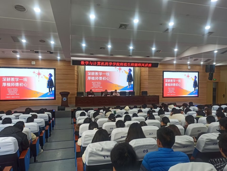 12月19日下午,数学与计算机科学学院在崇文楼C101举办师德师风专题讲座。学院特邀我校06级优秀校友、十堰市文锦学校政教主任郑锐娟老师担任主讲。讲座由副院长王启东主持,副院长赵雪漪、专业教师及数学与应用数学(含优师计划)专业200余名学生共同参与。