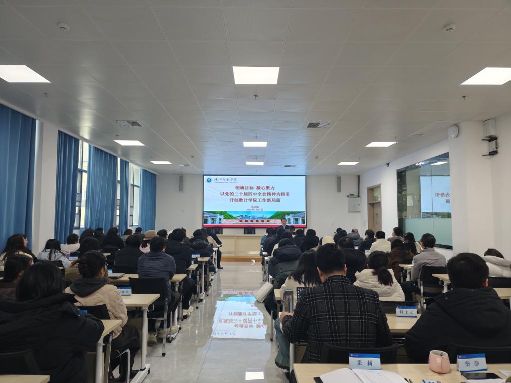 1月15日,数学与计算机科学学院在明理楼C203会议室召开党的二十届四中全会精神宣讲会。校党委常委、副校长吴红斌以《明确目标 凝心聚力 以党的二十届四中全会精神为指引 开创数计学院工作新局面》为题作宣讲,学院分党委书记张玉龙主持会议,全体教职工参会学习。
