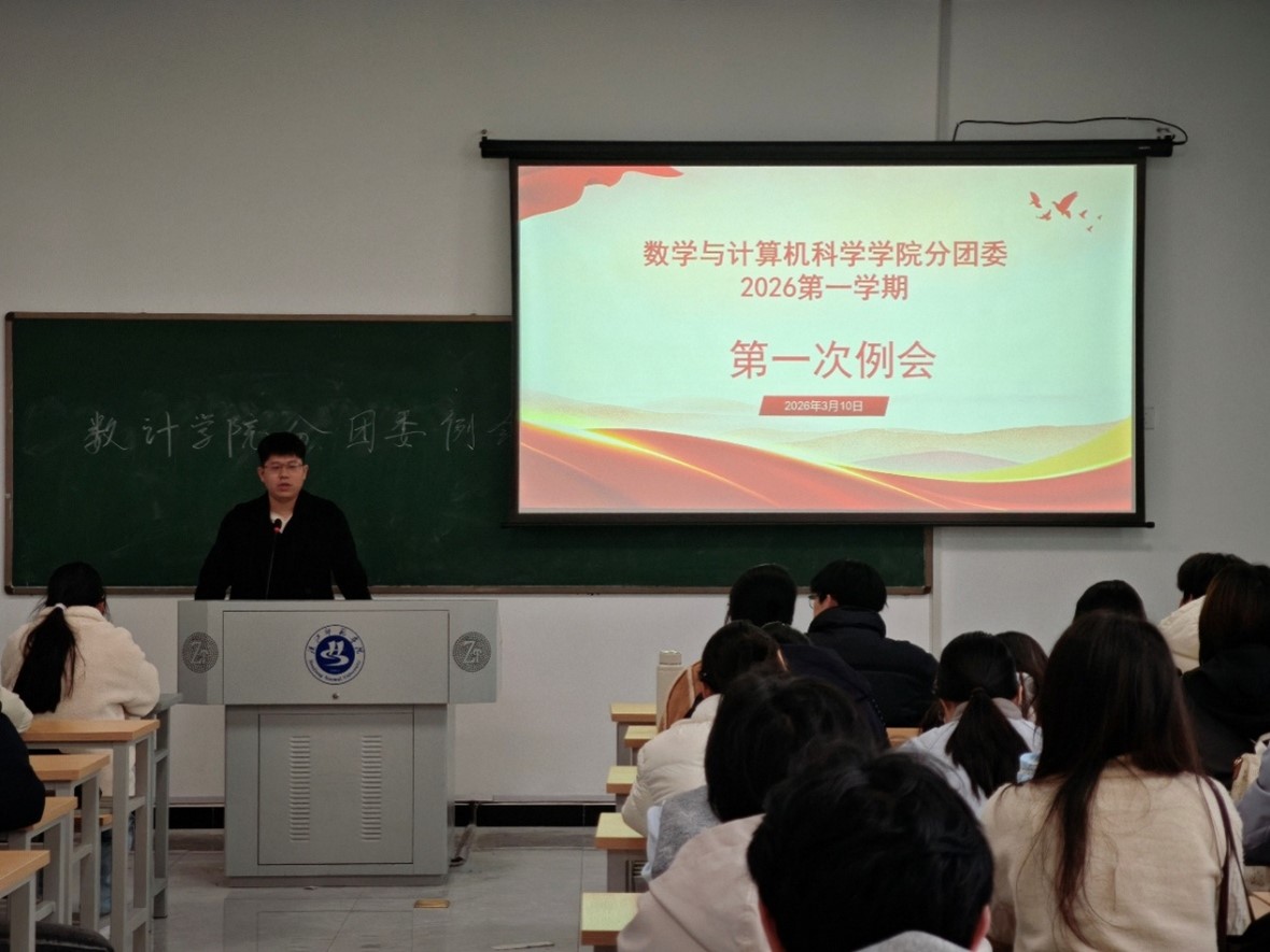 为统筹推进新学期各项工作,科学谋划年度重点任务,3月11日,数学与计算机科学学院分团委在明理楼C101召开2026年新学期首次工作例会。学院指导老师柯泓明、分团委各部门负责人及成员参加会议。